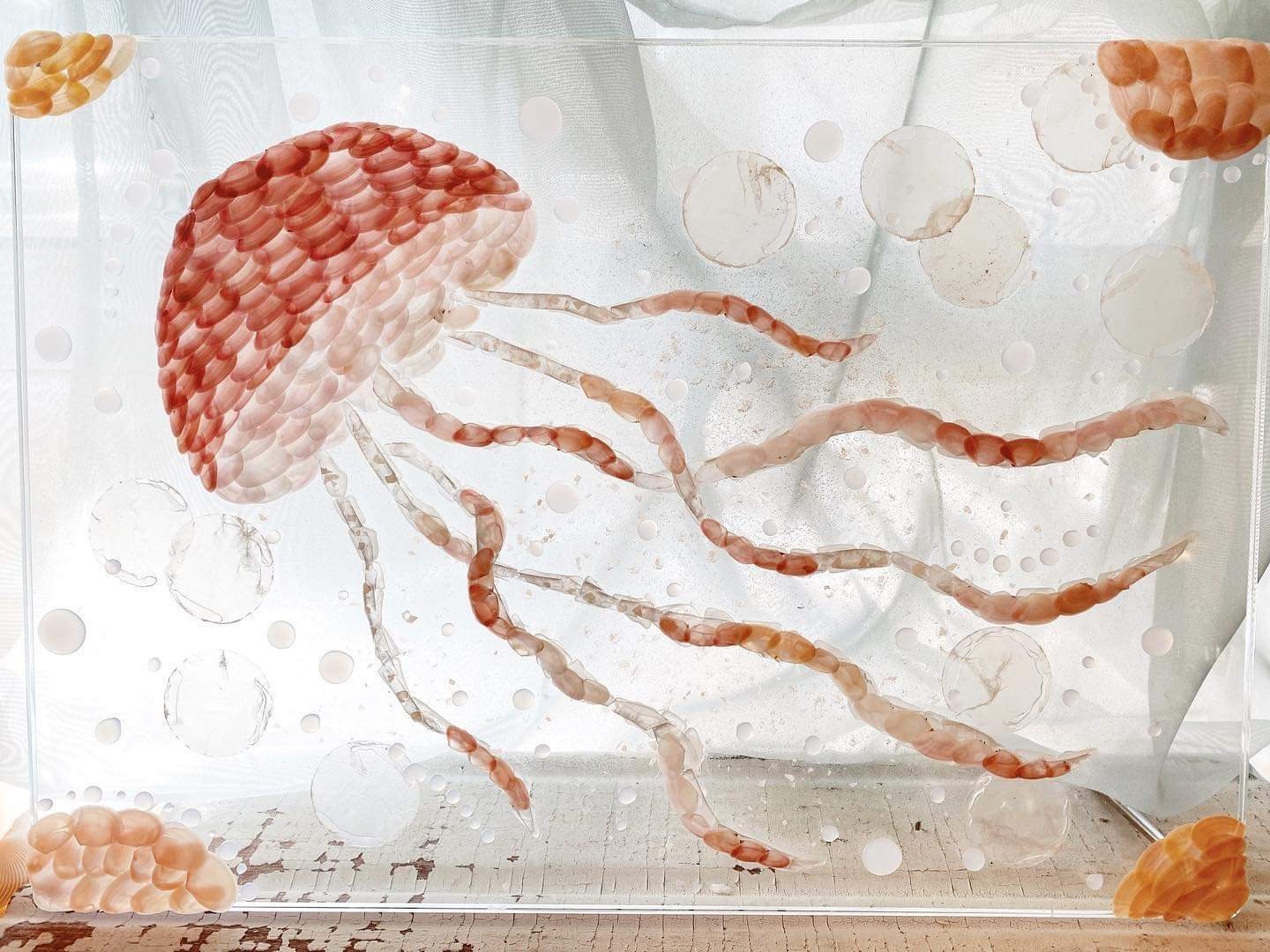 島の貝や珊瑚を集めて作品に